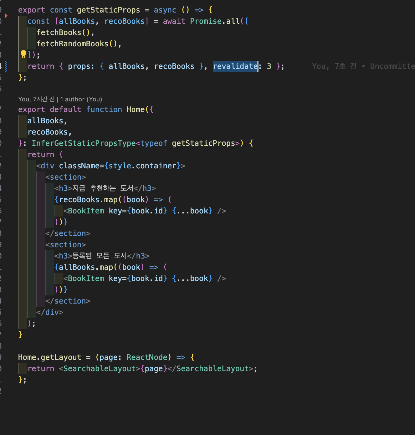 Next.js에서는 getStaticProps 함수의 반환 객체에 아래처럼 revalidate를 넣어주면 됩니다.