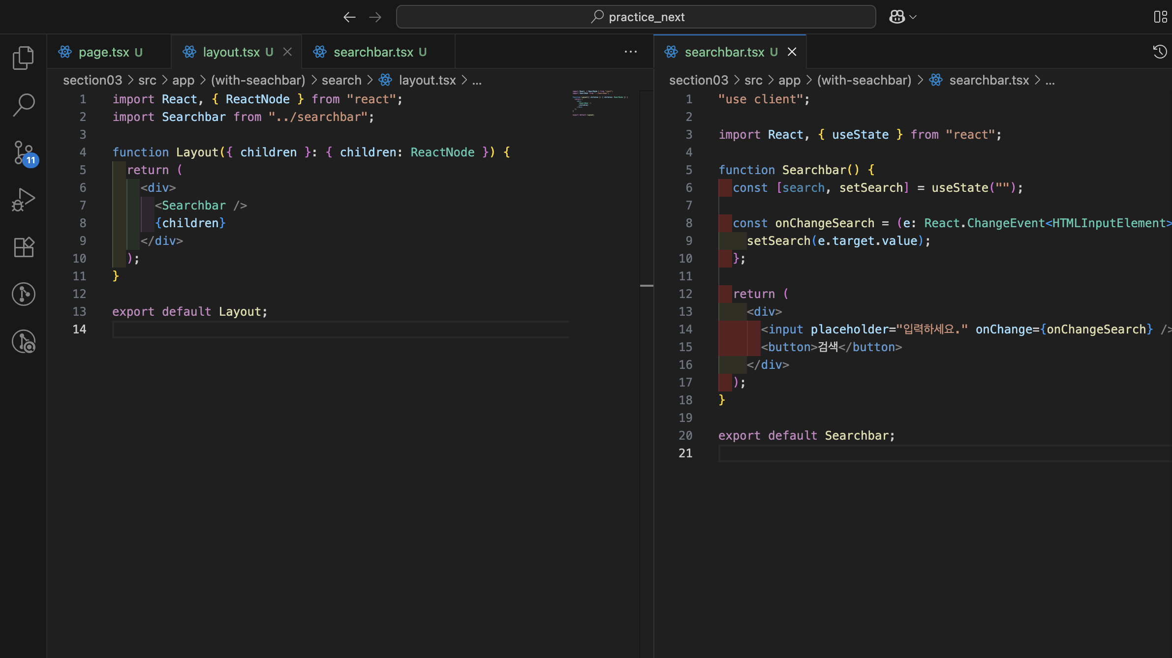 - 상태 관리와 이벤트(onClick 등)는 클라이언트 컴포넌트에서 처리