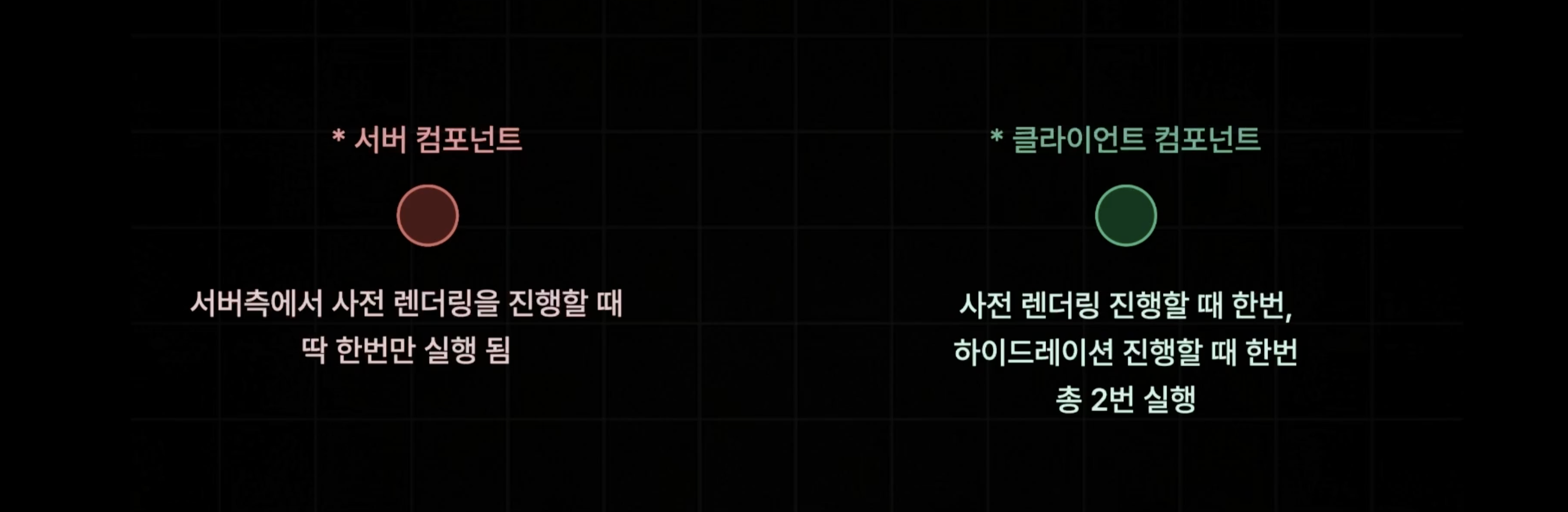| 상태/이벤트 | ❌ 없음 | ✅ 있음 (useState, onClick, 등) |