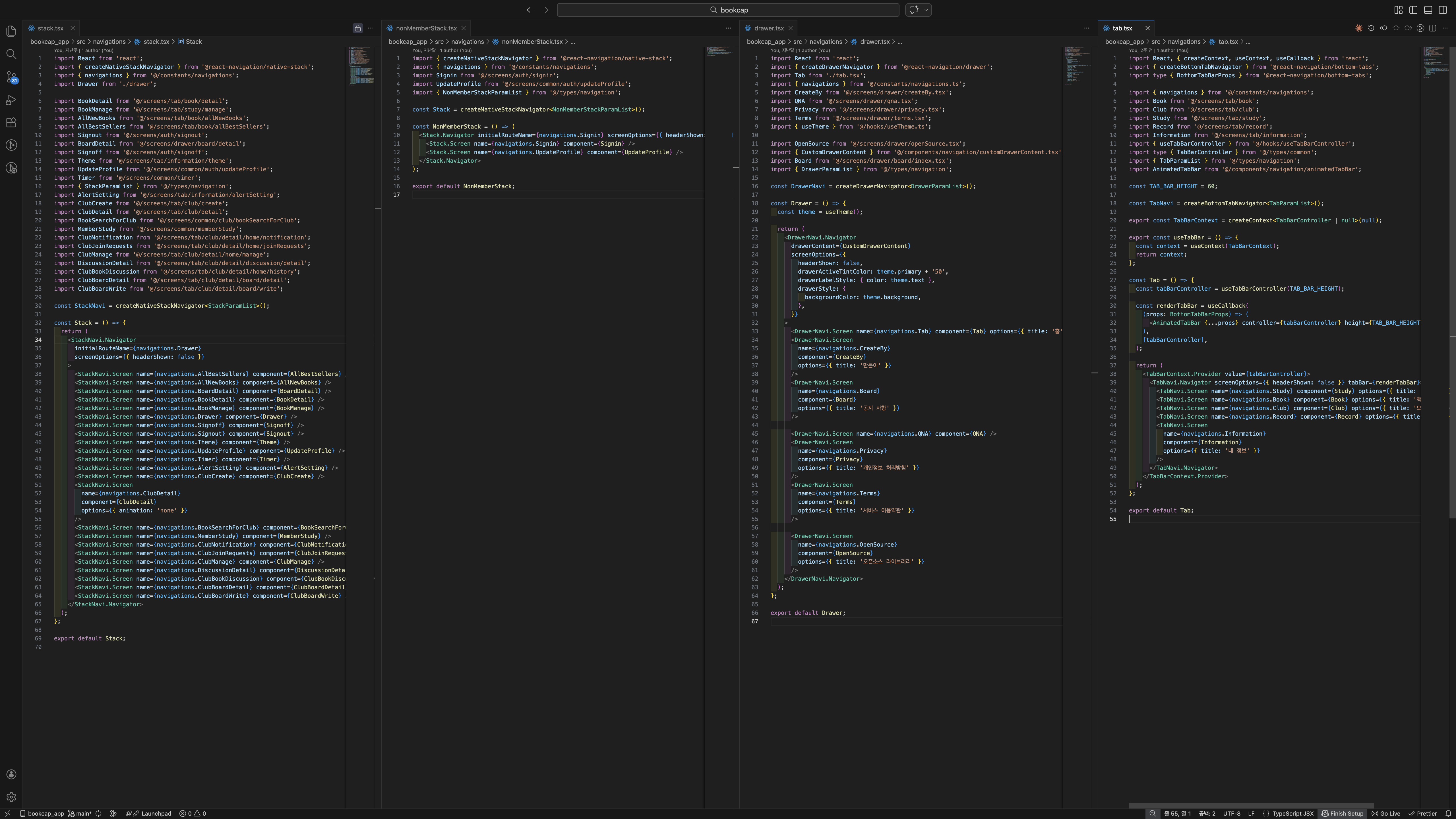 정석대로라면 그게 맞겠지만 중첩 네비게이션 구현 할 때 몇 번의 삽질 결과 제가 찾은 합의점은 rootStack > drawer > tab이 실전에서 가장 안정적이었습니다.